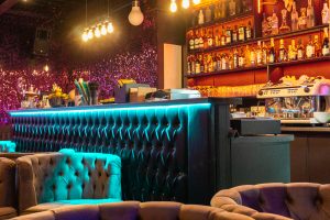 Modern eingerichtete Bar mit gemütlichen Lounge Sitzplätzen im Chesterfield Stil. Hier wird dein Aufenthalt gewiss nicht langweilig!